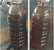 之前应用的润滑油一年后,成品油空气氧化情况严重,色调较黑,油垢多 嘉实多SHC齿轮油320生成齿轮油应用一年时,成品油情况优良,色调清澈。