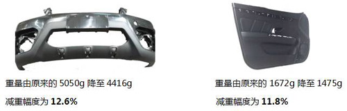 现阶段愈来愈多汽车厂家在全力促进保险杆和门边框等轿车流行制件的汽车轻量化,低密度 薄壁化计划方案将大有用武之地,下面的图是广东省茂业一部分经典案例。 低密度 薄壁化计划方案能够 使制件的减重力度进一步扩张,成形周期时间进一步减少。以所述低密度原材料为例子,某车系的保险杆,根据模貝薄壁化完成减重14%,选用低密度原材料能够 减重8.5%(相对性TD20),总体制件减重力度达到20%之上,而且商品外型(虎皮鹦鹉纹和缩痕等)显著好于一般的薄壁化PP。