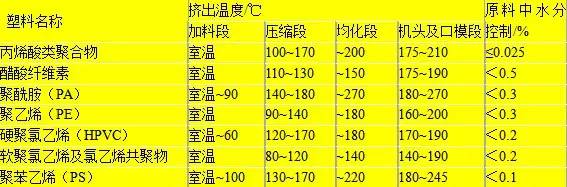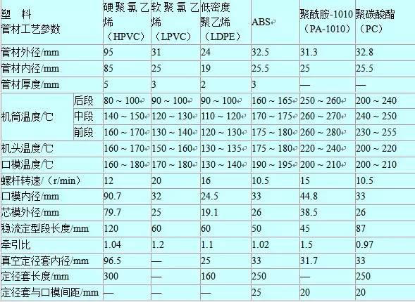 塑料管道挤出成型工艺参数