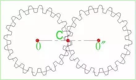 两齿轮廓无论在哪里触碰,过点接触所做的两啮合齿轮的公法线,务必与二轮心连心线交叉于一点“C”,那样才可以确保齿轮的瞬时速度传动比不会改变。将全部“C”点连起來就变成两个外切圆,称作分度圆,分度圆圆心距即齿轮圆心距。详细下面的图