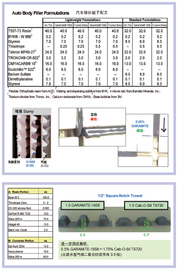 不饱和聚酯腻子(别名腻子)和环氧树脂沙浆便是典型性的高添充、高触变的运用实例。腻子作为轿车修复,规定工程施工时高触变下有优良的涂刮性,干固后便于打磨抛光。在下列秘方比照检测中,在别的性能贴近的状况下,GARAMITE® 的堆码主要表现最好(图6)。