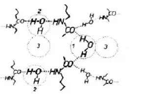 该原理觉得,水分子进到尼龙6/66不定形区,优先选择以象中1的方式融合(紧密联系,tightly bound),当水分子再次增加时,出現如图所示中2所显示的融合方式(疏松融合,loosely bound),大量的水分子将在分子结构空隙中根据水分子中间的共价键进一步沉积(clustering,如图所示中3所显示)。