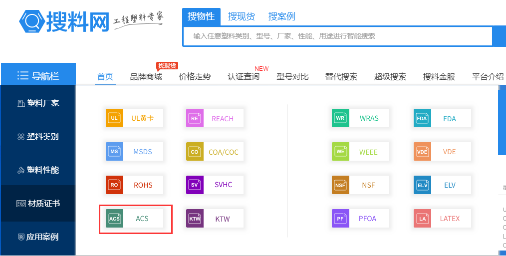 如果您想查询现在所用的牌号是否符合ACS认证,就上搜料网