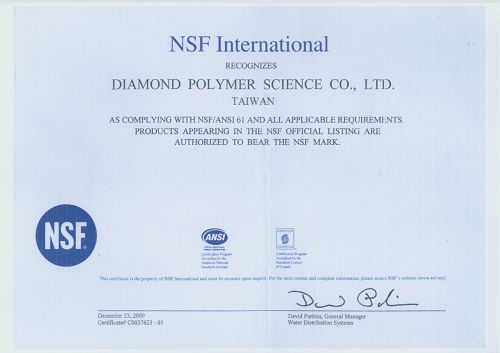 NSF作为中立的第三方对美国以及国际标准的认证资格得到包括美国国家标准研究院(ANSI)、美国职业安全与健康行署、加拿大国家标准委员会等13个国家或行业权威组织的批准与认证。NSF是世界卫生组织(WHO)在食品安全与饮用水安全与处理方面的指定合作中心。因此凡经授权印有NSF标志的产品意味着该产品在如下方面得到确认: