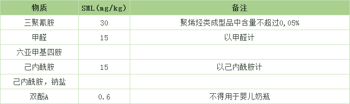 表3.(EU)No10/2011中部分物质特定迁移量要求