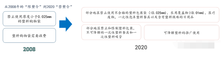 中国可降解塑料领域的“限塑令”到“禁塑令”的政策变化