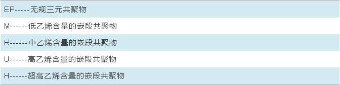 当高聚物的汇聚种类为均聚物时,第三一部分省去。其他的高聚物汇聚种类代号的表明方式为:
