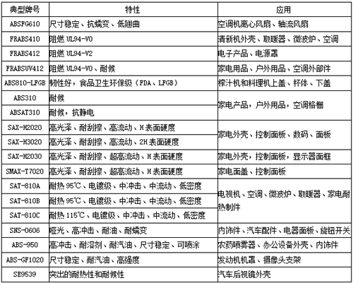 聚赛龙abs工程塑料运用一览表: