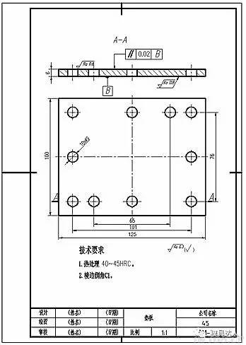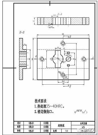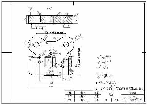 ● 补齐别的尺寸及技术标准。这一环节可逐一零件开展,先补齐别的尺寸,比如轮廊尺寸尺寸、部位尺寸等;再标注各生产加工面的粗糙度规定及倒圆角、圆弧的生产加工状况,最终是选料及热处理工艺,并对本零件开展取名等。