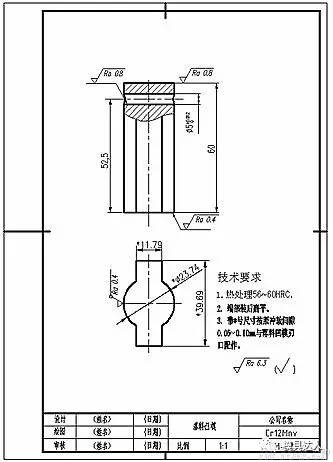 b五金模具的凸模与凹模工作台面粗糙度Ra值一般 为0.8~0.4µm;凸模与凹模固定不动位置及与之相互配合的模版孔粗糙度Ra值一般 为3.2~O.8µm。