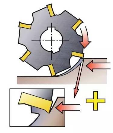 图2 转动切入法能够 减少震动和功效于刀具的拉应力