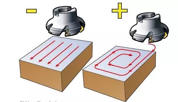 尽管翻转切入法关键用以改善刀具切入工件的方法,但同样的生产加工原 理也可运用于铣削的别的环节。针对大规模的平面图铣削生产加工,常见的程序编写方法是让刀具沿工件的总长多次进刀铣削,并在反过来方位上进行下一次切削。 为了更好地维持稳定的轴向吃走刀的量,清除震动,选用螺旋式进刀和翻转铣削工件拐角紧密结合的进刀方法一般 实际效果更强。