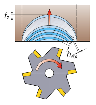 当铣刀的切入角低于90°时,因为切削变软,轴径切削薄厚会低于 铣刀的走刀率,则铣刀切入角将对其可用的每齿切削速度造成非常大的危害。