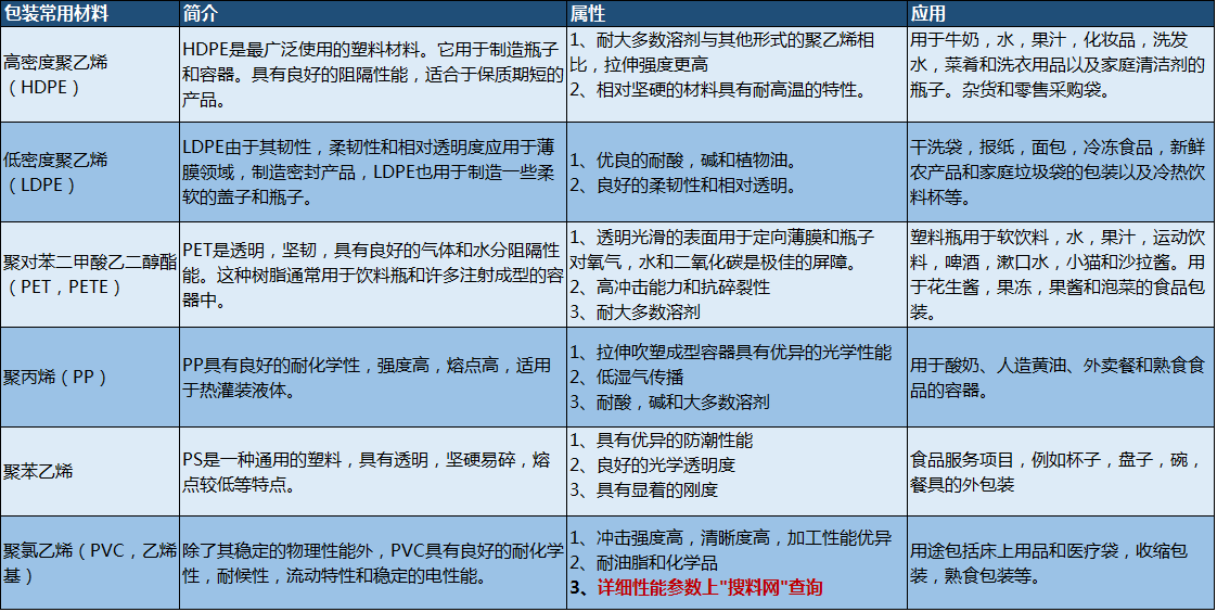 以上只是塑料包装材料的一些基本性能,具体参数的考量还需上“搜料网”