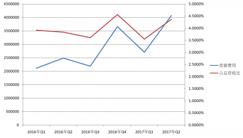 值得注意的是,第二季度京东的履约成本虽然达到了六个季度以来最高,但与在线营销收入的比例却是六个季度以来最低。有观点认为,这得益于第三方平台分摊了物流成本。