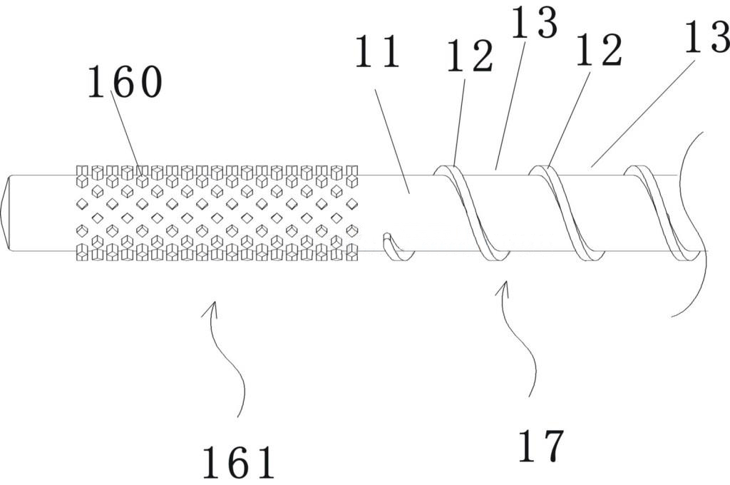 在其中加料段的竖向部位挨近料筒后端入料料仓,且加料段的螺槽深层维持不会改变。而缩小段的竖向部位紧邻加料段并坐落于加料段的正前方,且缩小段的螺槽深层由后到前慢慢缩小,缩小段最终端螺槽深层相当于加料段的螺槽深层,缩小段最前端开发的螺槽深层相当于匀化段的螺槽深层。混炼段和匀化段坐落于缩小段的正前方,混炼段的表层产生有多条凸起的混炼螺母。