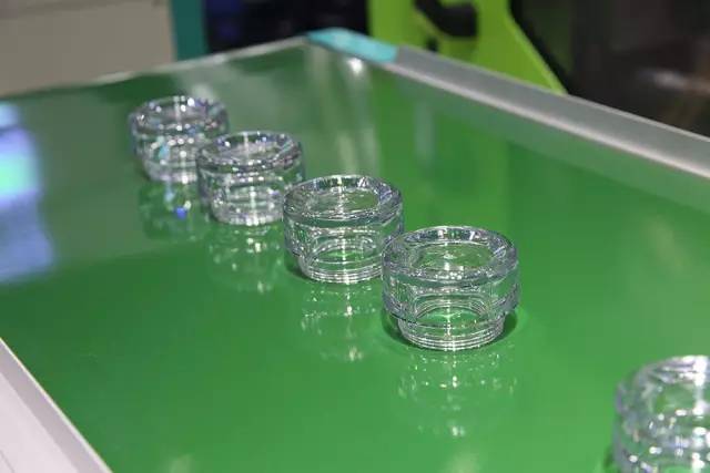 继在上年Chinaplas展览厚壁制品――电子光学LED镜片后,2020年A5系列产品高档伺服电机塑料机再度挑戰厚壁制品销售市场,选用新式塑料瓶子原材料PETG,UN260A5当场生产制造超厚壁全透明制品――画妆霜膏瓶,制品更厚处达到15mm。