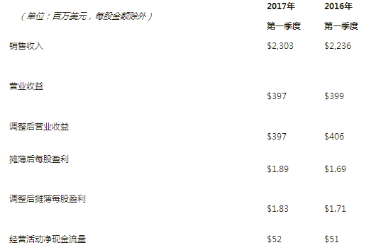 未来展望2017年全年度销售业绩,Mark Costa表明:“我们在2017年获得了优良的开始,第一季度销售业绩稳进。尽管全世界业务流程自然环境仍然填满可变性,大家依然希望高使用价值的产品创新将再次完成明显增长。除此之外大家还将不断执行严苛的成本控制,标准资金管理,再次促进收益增长,进而相抵化学纤维业务流程的不好危害。虽然遭遇挑戰,大家对完成增长的一系列措施满怀信心。大家预估2017年的调节后每股盈利增长将做到8-12%,与先前方案保持一致。”