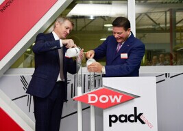 陶氏包装与特种塑料业务部亚太地区商业服务高级副总裁Mark Saurin(左)与陶氏包装与特种塑料业务部全世界研发总监Dave Parrillo在启动式当场。