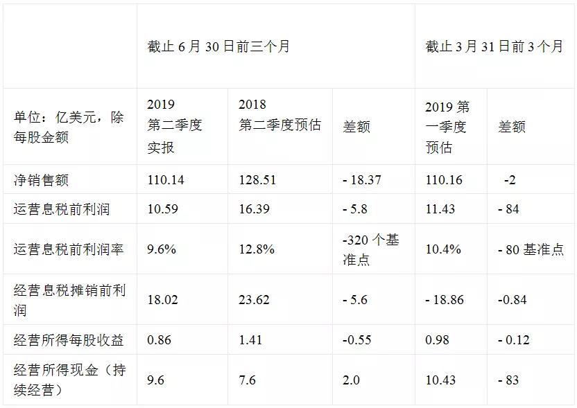 对比2018年二季度,今年的销售下降、不利因素增加、销售价格降低、汇率变动等因素相互叠加,最后表现在财报中。
