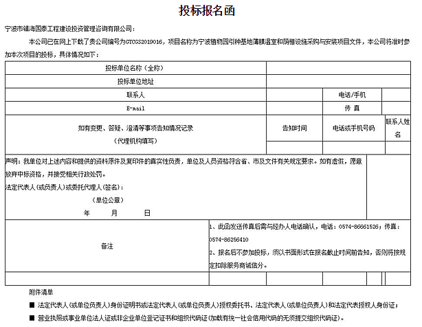 宁波植物园引种基地薄膜温室和荫棚设备采购与安装项目投标采