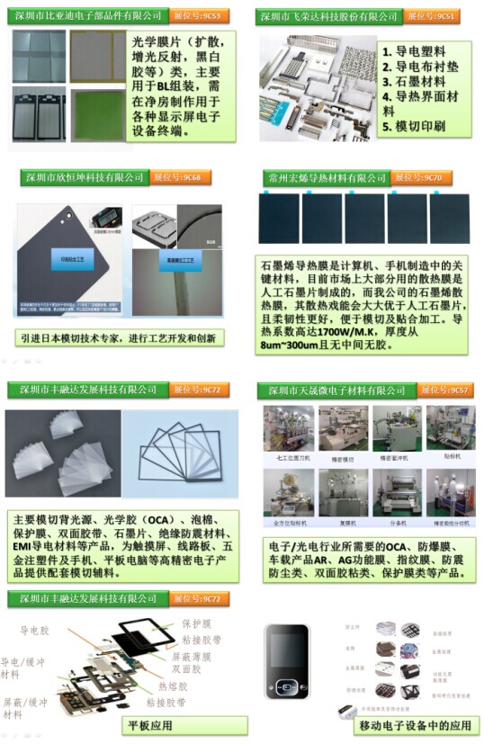 据主办单位详细介绍,这届展会主办单位将发布模切行业交流展示区,专为模切生产加工服务型开设,领域具备象征性模切服务项目生产商将联接多功能性薄膜和胶粘带、模切全部全产业链上中下游经销商,根据本次展会及有关模切峰会主题活动一同讨论销售市场商机。本次模切展示区象征性展商包含:比亚迪汽车、飞荣达、欣恒坤、恒铭达、领胜、丰融达、宏烯、天晟微等领域内10家模切服务项目生产商都将见面这届展会。模切生产加工公司将出示模切技术咨询及模切原材料商品,本次出展模切公司也将携本身具备竞争能力的服务项目及商品现身FILM EXPO SHENZHEN 2016与 APFO EXPO SHENZHEN 2016。