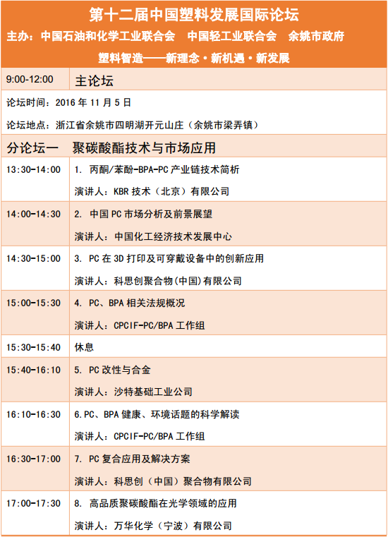 第十二届中国塑料展开国际论坛PC分论坛议程看这里!