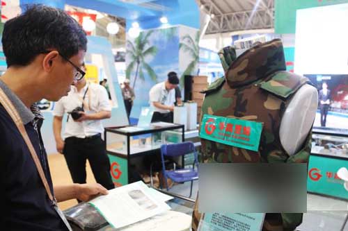 在B厅,青岛市一新科技公司将防弹衣、轮胎摆到了展台。“这不是新材料产业展览会么?咋把防弹衣也摆出了?”许多观看者看见站口内的展览品全头水雾。