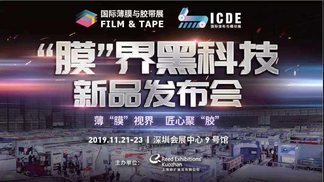 深圳国际薄膜与胶带展览会(简称:FILM&TAPEEXPO),将于2019年11月21-23日在深圳会展中心,同期举办华南国际涂布与模切加工技术展览会,本次展会将带来诸多知名品牌的各种功能性薄膜和胶粘制品产品与新型技术,聚焦行业发展痛点,为参展商与到场观众打造交流洽谈的优质平台。
