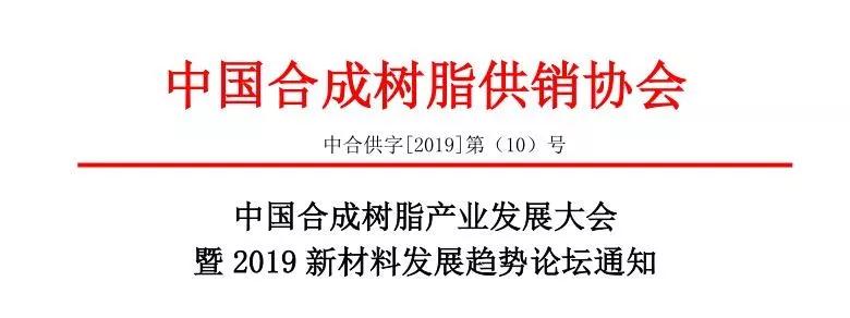 中国合成树脂产业发展大会暨2019新材料发展趋势论坛通知