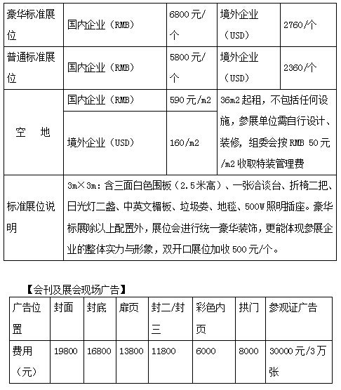 【展位收费标准】