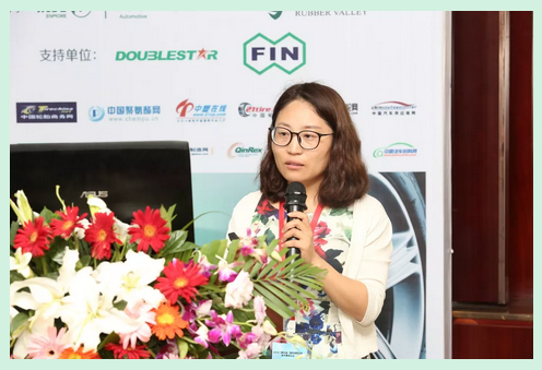 三角轮胎股份有限公司乘用车胎设计中心工程师赵光芳女士根据其团队的研究进展,就轮胎低滚阻、低油耗配方设计的开发思路、原辅料选择、测试结果做了相关分享,着重介绍了该方案在抗湿滑、降滚阻方面的优越性。