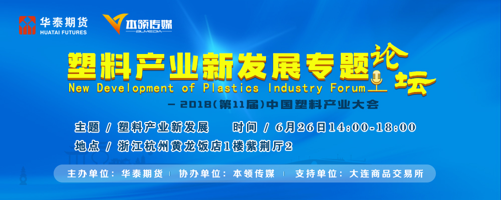 由大连商品交易所、中国石油和化学工业联合会与中国轻工业联合会联合主办的“2018(第11届)中国塑料产业大会”将于2018年6月27日在杭州黄龙饭店隆重召开。在大商所支持下,本届大会合作机构华泰期货,定于6月26日(周二)下午在该酒店一楼紫荆厅2举办“场外期权与塑料产业创新发展论坛”专题论坛。