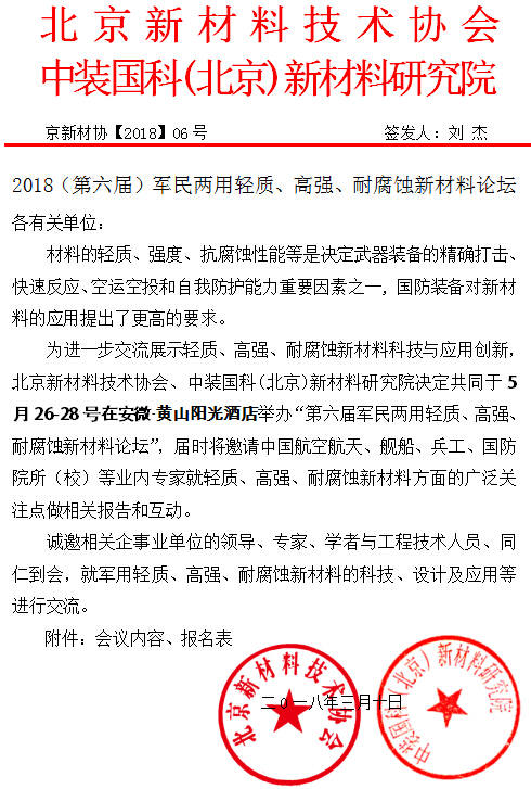 2018军民两用轻质、高强、耐腐蚀新资料论坛