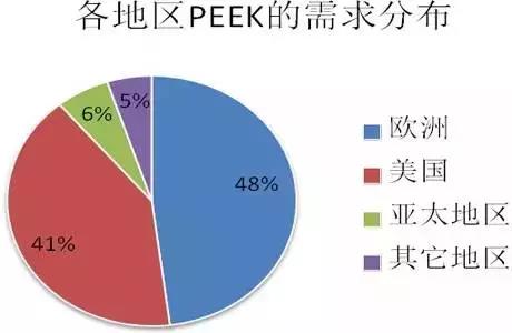 PEEK的市场拓展速度一直保持15%以上。其中欧洲占48%,美国占41%,亚太地区约占6%,其他地区约占5%。