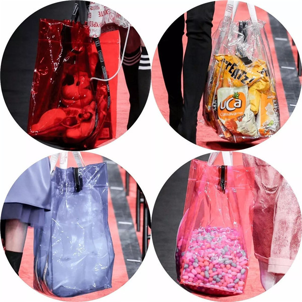 看来前几年曾风靡一时的“透明塑料”又回归了!这样子,下雨天也能玩出时髦!