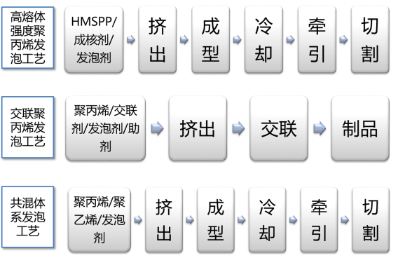 发泡聚丙烯关键有三种制取加工工艺:高溶体抗压强度聚丙烯发泡、化学交联聚丙烯发泡、共混管理体系发泡加工工艺。