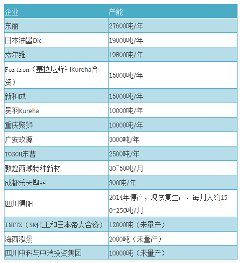 国内外PPS的主要生产商以及产能分布:
