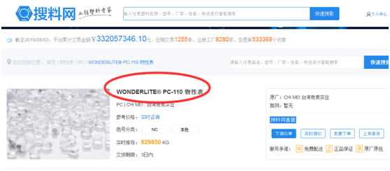 搜料网提供数据服务:目前搜料网已收录10万+塑料型号,880+个全球主流的橡塑生产厂商,3500+个全球主流产品商标;500+种橡塑类别的原厂中文物性表,部分型号收录UL黄卡、MSDS证书