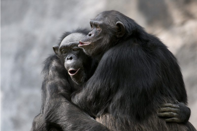 黑猩猩的情感表达非常直观,不高兴时,他们会与同伴们坐在一起,通过亲吻、拥抱或梳理毛发来保证安心。