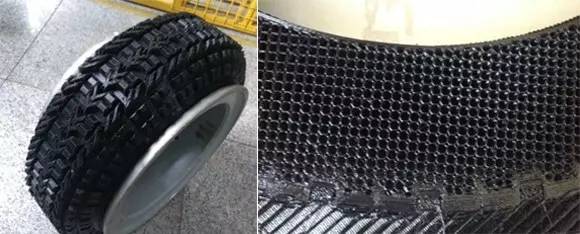 另外,本科学研究将聚氨酯原材料与三维打印技术性融合,根据熔化堆积法(FDM)进行三维打印,轮胎內部为正六边形中空构造,完成轮胎一体成形,不用模貝就可制取出具备各种各样纹路构造的低滚阻、超耐磨轮胎,生产流程短、自动式、可完成当场生产制造,因而,生产制造更迅速、更高效率。