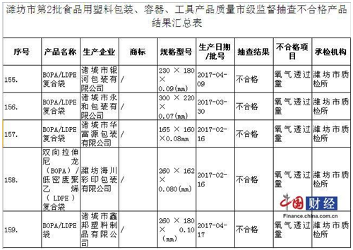 潍坊市质监局官方网站近日公布信息,2017年4月至6月,各地各部门机构进行了第二批产品品质省监管抽查。此次共抽查了161家公司生产制造的185批号食品类用塑料包装制品、器皿、专用工具等产品产品。抽查发现5家公司5批号产品不符有关规范的规定,产品不合格,不合格新项目均为co2通过量。