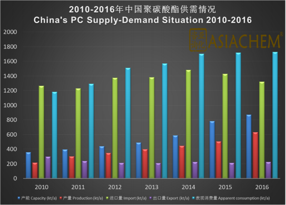 中国是最开始逐渐聚碳酸酯科研开发和工业生产的国家之一,可是因为设备经营规模小、技术实力落伍、产品品质差等缘故造成 了商品没法与海外相市场竞争。2005年至今,伴随着德国拜耳(现为科思创)、帝人、三菱等外资公司逐渐在中国项目投资基本建设聚碳酸酯设备,中国聚碳酸酯销售市场一度基本上为外资公司垄断性。
