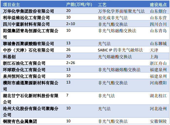 1. 中国公司进军聚碳酸酯业务流程,摆脱海外垄断性