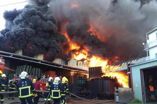 台湾屏东一塑料厂失火 浓烟滚滚致大气污染严重