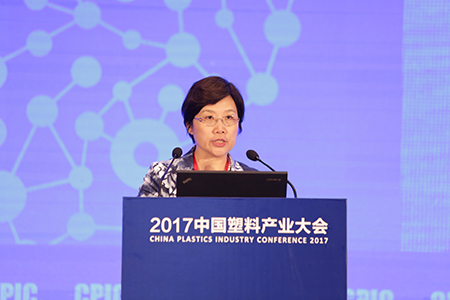 中国轻工业协会副理事长何烨在“2017中国塑胶产业链交流会”上致词