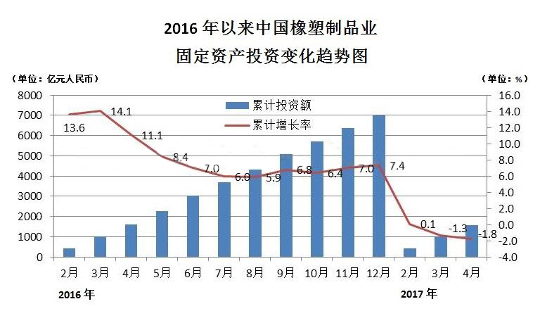 硫化橡胶和塑胶制品业固定资产投资额为1575亿人民币,同比减少1.8%。
