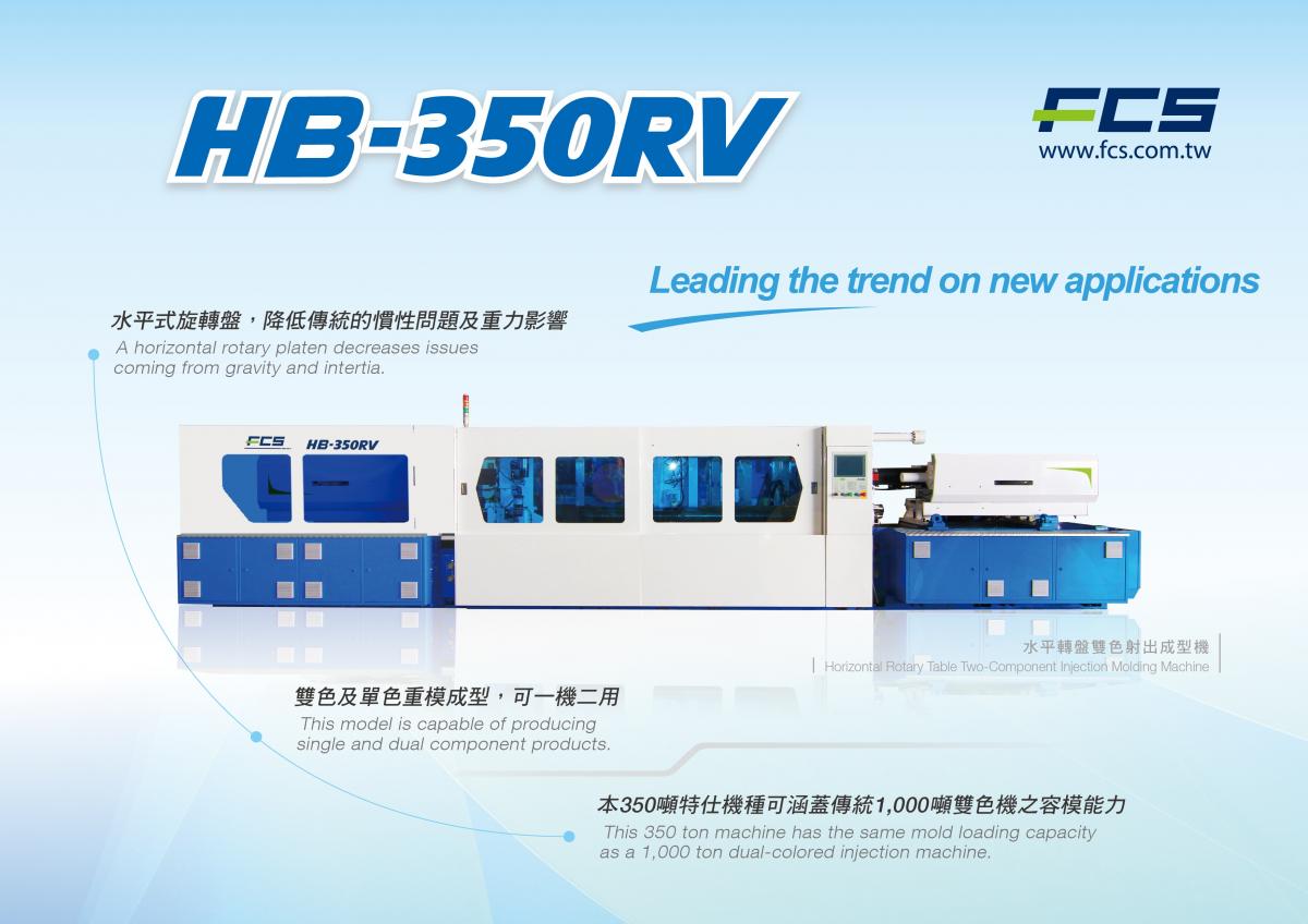 2012年富强鑫取得成功产品研发HB-RV系列产品「大中型二平板式水准转盘双色机」,锁模力达1,900吨,是现阶段世界各国极个别特大型双色机之一。该系列产品融合大中型二全自动切管机、双色机、水准转盘、重迭模及伺服节能多种技术性,此次展览会参展的HB-350RV水准转盘双色机,将相互配合KUKA六轴机械臂,自动化生产定义双色汽车天窗。特性以下: