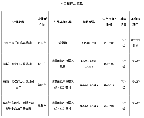 辽宁省质监局抽检40批次农用塑料管材 4批次不合格