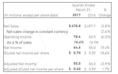 2017年度调节后的EPS指数值保持在2.64美元至2.76美金。 2017财政年度的市场销售预估降至20亿至20.8亿美金。